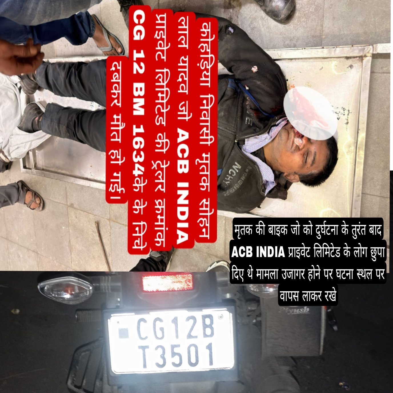 ताज्जुब की बात यह रही की घटना स्थल से ACB इंडिया प्राइवेट लिमिटेड के कर्मचारियों नें मृतक के शव को पुलिस को बिना सुचना दिए बिना पुलिस की उपस्थिति के वहाँ से हटा दिए। साथ ही मृतक के मोटर साइकिल जिसका नंबर CG 12 BT 3501 HONDA LEO था जिसे ACB इंडिया प्राइवेट लिमिटेड के कर्मचारियों नें उक्त बाइक को घटना स्थल से उठाकर कंपनी भीतर छुपा दिए थे जिससे की सबूत को मिटाया जा सके किसी को कुछ खबर ना हो। मगर मामला उजागर होने के पश्चात बाइक को पुनः घटना स्थल पर acb के कर्मचारी वापस लाकर रखे।