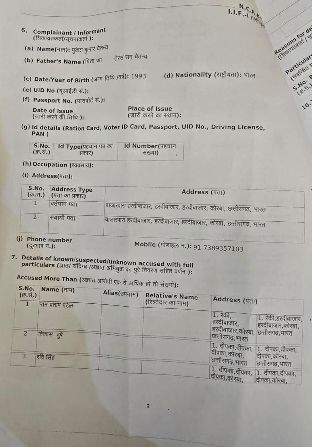 *कानूनी कार्यवाही FIR No. व धाराएं*