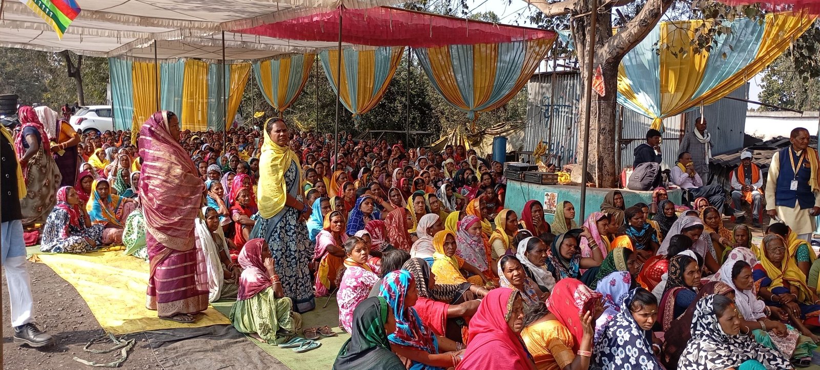महापंचायत में जिला प्रशासन एवं एसईसीएल प्रबंधन की उपस्थिति में सभा को संबोधित करते हुए।