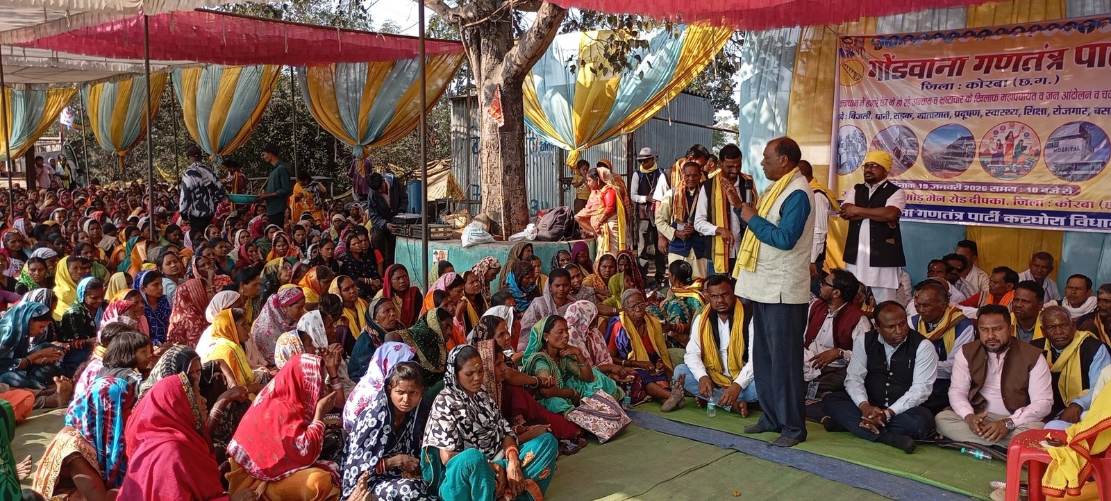 गोंडवाना गणतंत्र पार्टी के प्रदेश प्रवक्ता श्री ईश्वर अर्मेक्शन ने कहा—“आज हम यहाँ किसी मनोरंजन के लिए नहीं, बल्कि अपने हक, सम्मान और इंसाफ के लिए एकत्र हुए हैं। कोरबा जिला, जिसके कोयले से पूरे देश को रोशनी मिलती है, वही कोरबा आज धूल, बीमारी, दुर्घटनाओं और मौत के साये में जीने को मजबूर है।”