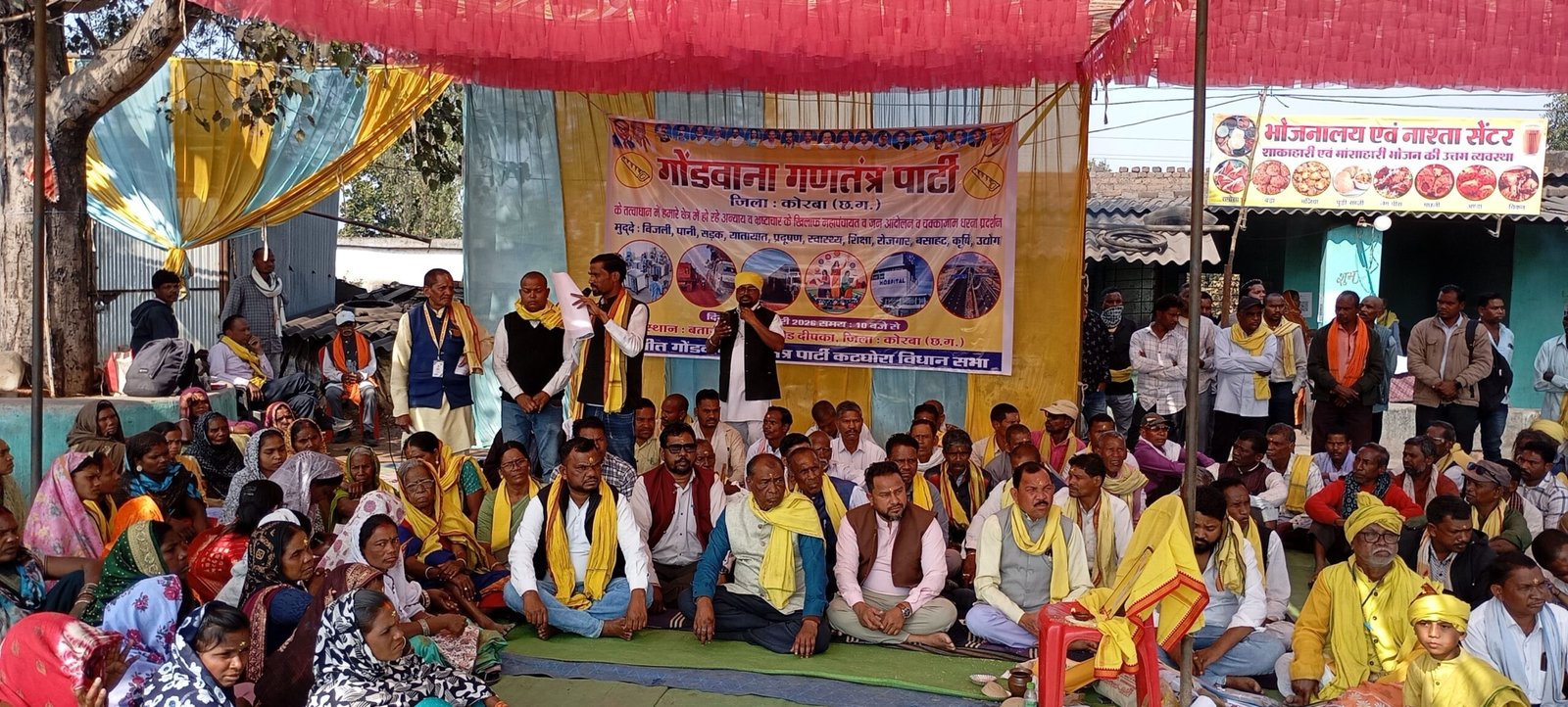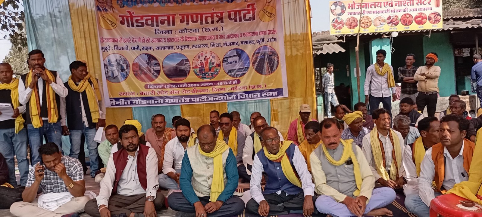 छत्तीसगढ़ – कोरबा – गोंडवाना गणतंत्र पार्टी (GGP) ईश्वर अर्मेक्शन जी के नेतृत्व में एवं जिला सरपंच संघ के आह्वान पर आज सिरकी मोड़, कोरबा में आयोजित महापंचायत जनआंदोलन में जिले के विभिन्न ग्रामों से हजारों की संख्या में ग्रामीण, आदिवासी, किसान, महिलाएँ एवं युवा शामिल हुए।